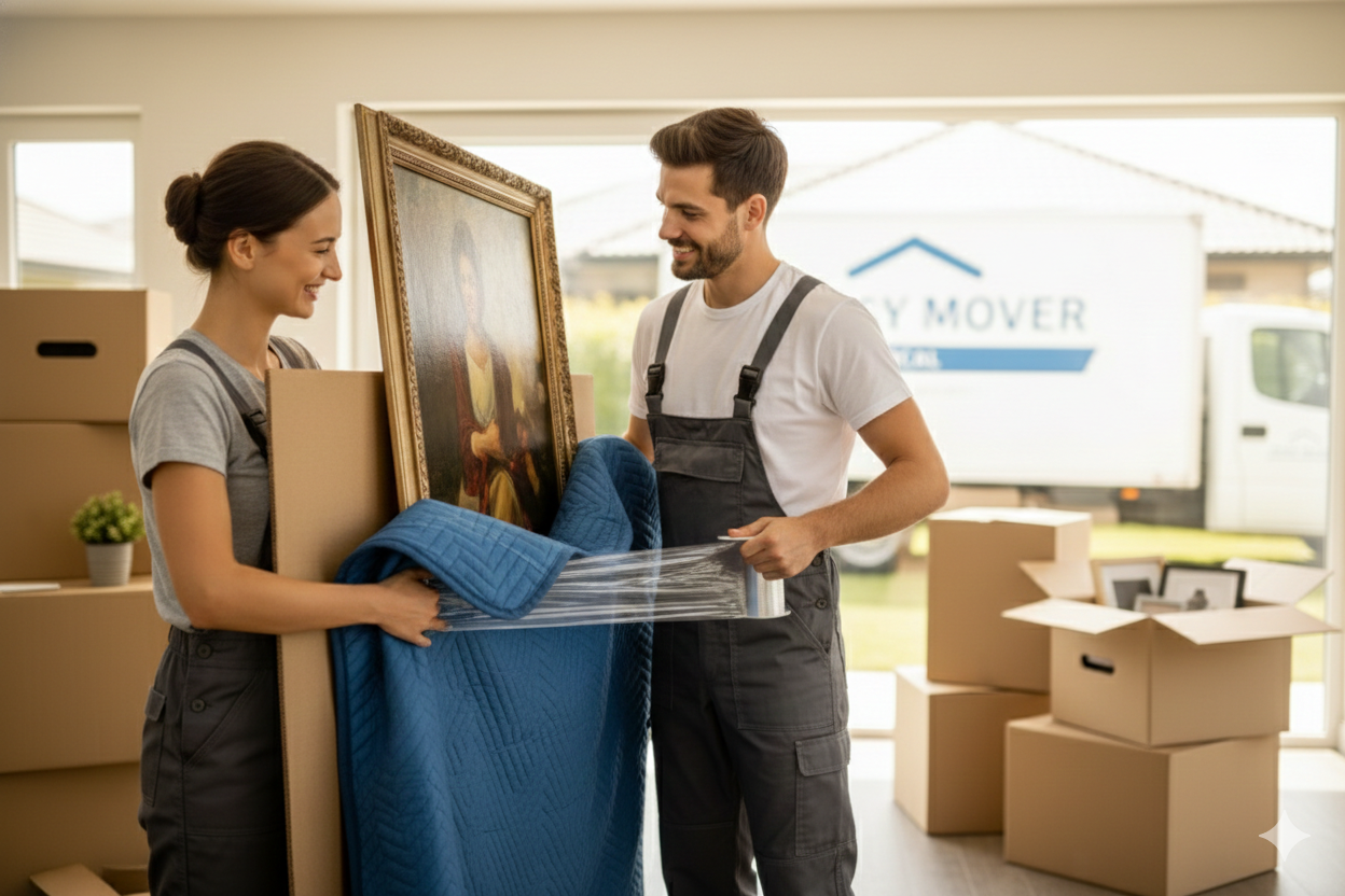 Modern trucks with GPS tracking, Professional-grade moving equipment for furniture and fragile items, Protective padding, straps, and shrink wrap